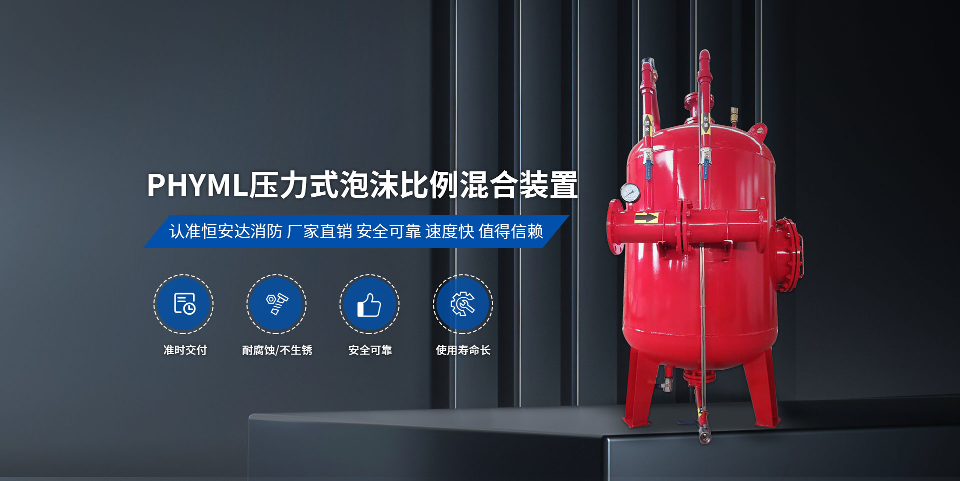 衛(wèi)輝市恒安達消防設(shè)備有限公司,位于中國旅游城市比干故里——河南省衛(wèi)輝市,公司位置緊鄰 107 國道、新濮公路、京珠高速,交通十分便利?! ∥夜局饕a(chǎn)品有:PHY/PHYM系列壓力式比例混合裝置、消防增壓穩(wěn)壓給水設(shè)備、半固定式泡沫滅火裝置、PC 系列泡沫產(chǎn)生器、PS/PP/PL 系列消防炮、PSG 型泡沫消火栓箱、七氟丙烷滅火裝置、水成膜泡沫滅火劑、合成泡沫滅火劑、抗溶水成膜泡沫滅火劑、抗溶泡沫滅火劑、高倍泡沫滅火劑、A 類泡沫滅火劑、水系泡沫滅火劑、消防泵等。并承接老油罐帶油無火花開孔消防改造工程。以上設(shè)備,廣泛用于石油、化工、機場、碼頭、電廠、水上船舶、油庫等場地的泡沫滅火裝置?! ∥夜緭碛懈鞣N工藝先進的專用設(shè)備 60 余臺套,各種試驗檢測設(shè)備 10 余臺套,擁有數(shù)十名技師等人才。本公司所有產(chǎn)品均通過國家消防裝備質(zhì)量監(jiān)督檢驗中心的型式檢驗。我公司用科學(xué)的管理模式,雄厚的技術(shù)力量,嚴格的質(zhì)量保障體系,確保產(chǎn)品質(zhì)量穩(wěn)定可靠,快捷和完善的售后服務(wù),樹立我們的企業(yè)形象并為消防事業(yè)作出貢獻。  公司自創(chuàng)建以來,始終堅持“規(guī)范質(zhì)量行為,滿足顧客要求”的質(zhì)量和經(jīng)營方針,一直堅持“以質(zhì)量為基礎(chǔ),以信譽為生命、以公平的價格贏得客戶”的信念,竭誠為廣大客戶和社會各界提供產(chǎn)品和良好的服務(wù)。